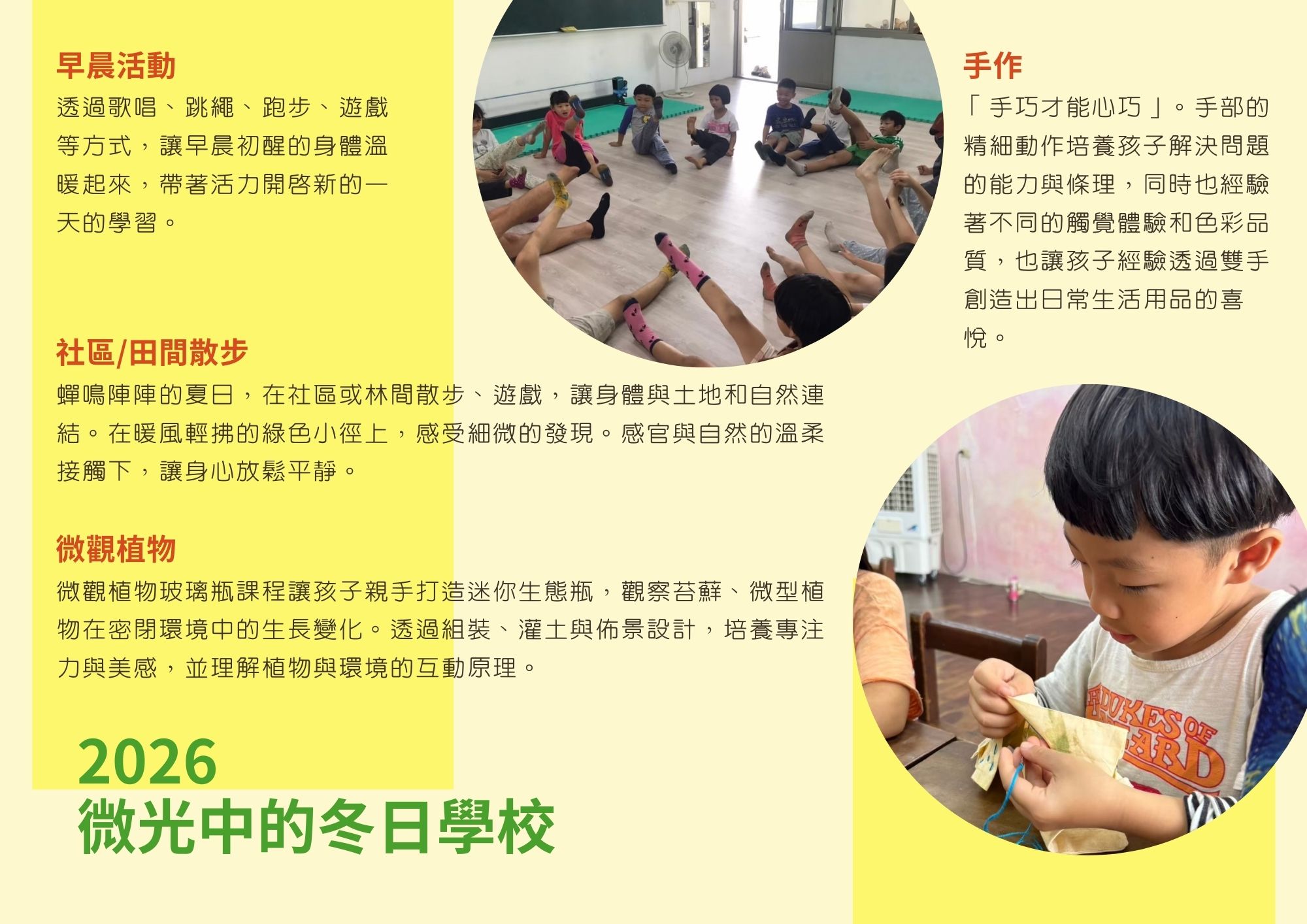 這是專為小學生設計的寒假不過夜活動,帶領孩子進入整體的學習,